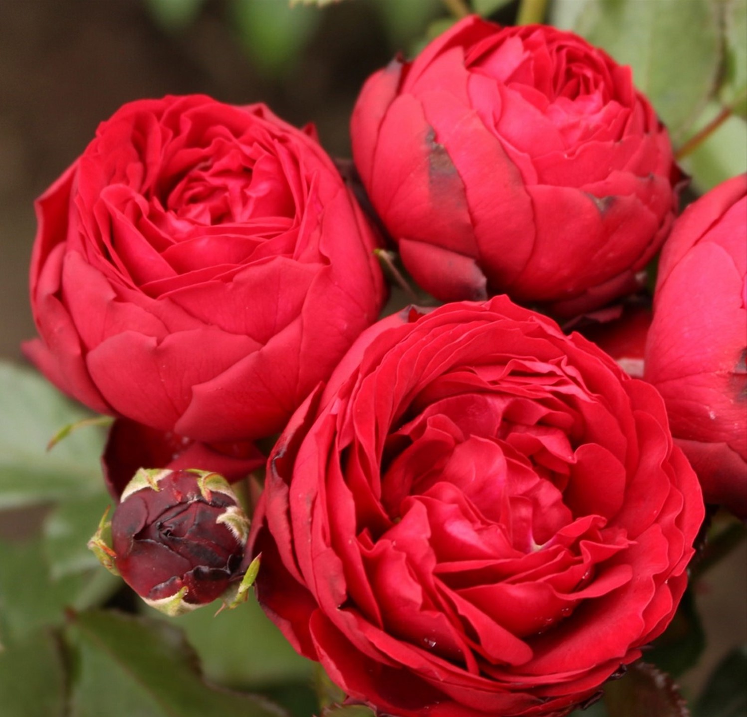 Tiamo (W. Kordes’ Söhne 2018) Описание сорта: Цветки шаровидные, диаметром 8-10 см, густомахровые, красные, устойчивые к неблагоприятным погодным условиям. Аромат лёгкий. Цветение повторное. Листва тёмно-зелёная, глянцевая с хорошей устойчивостью к чёрной пятнистости и мучнистой росе. Куст пряморослый, прямостоячий, густой с пропорциональная формой роста, высотой 100 см и шириной 50 см. Морозостойкость средняя, требуется укрытие на зиму.